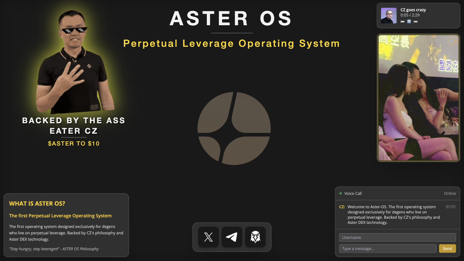 The first operating system designed exclusively for degens who live on perpetual leverage. Backed by CZ's philosophy and Aster DEX technology.